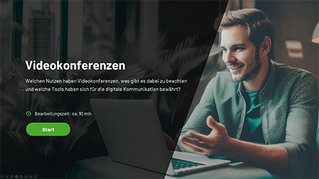 In diesem Lernbaustein erfahren Sie, welchen Nutzen Videokonferenzen haben, was es bei deren Einsatz zu beachten gibt und welche Tools sich für die digitale Kommunikation bewährt haben.